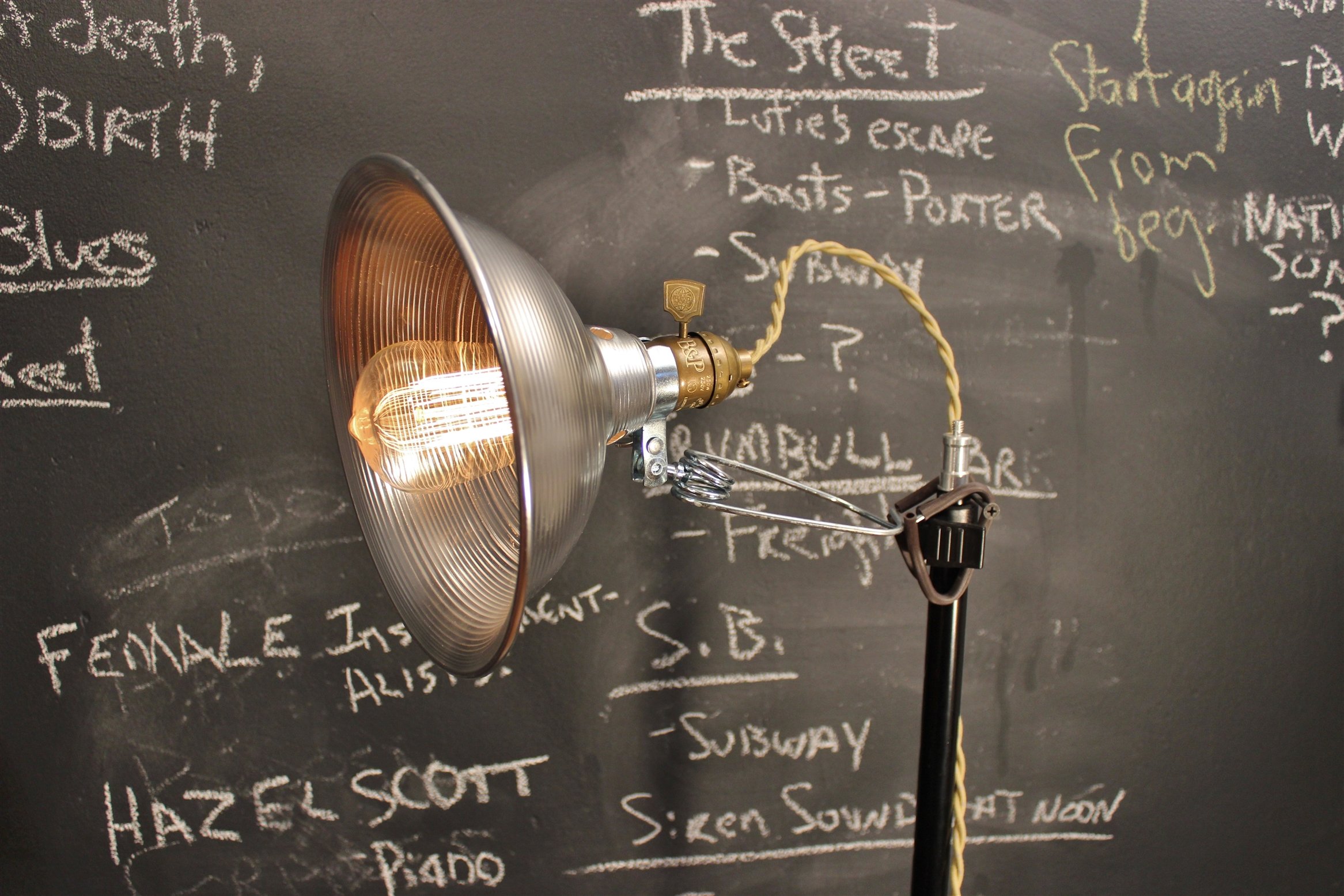 There are clamp lamps aplenty on the market, but we just weren’t satisfied with plastic sockets and drab rubber cords, so we came up with this handsome little antique style clamp lamp with period-correct trimmings.